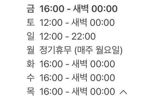 영업시간은 요일마다 조금씩 달라서