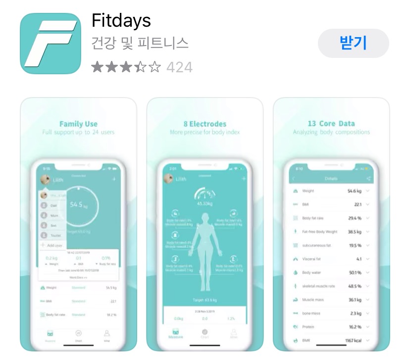 그 다음은 Fitdays 라는 이 어플을 깔아주세요.